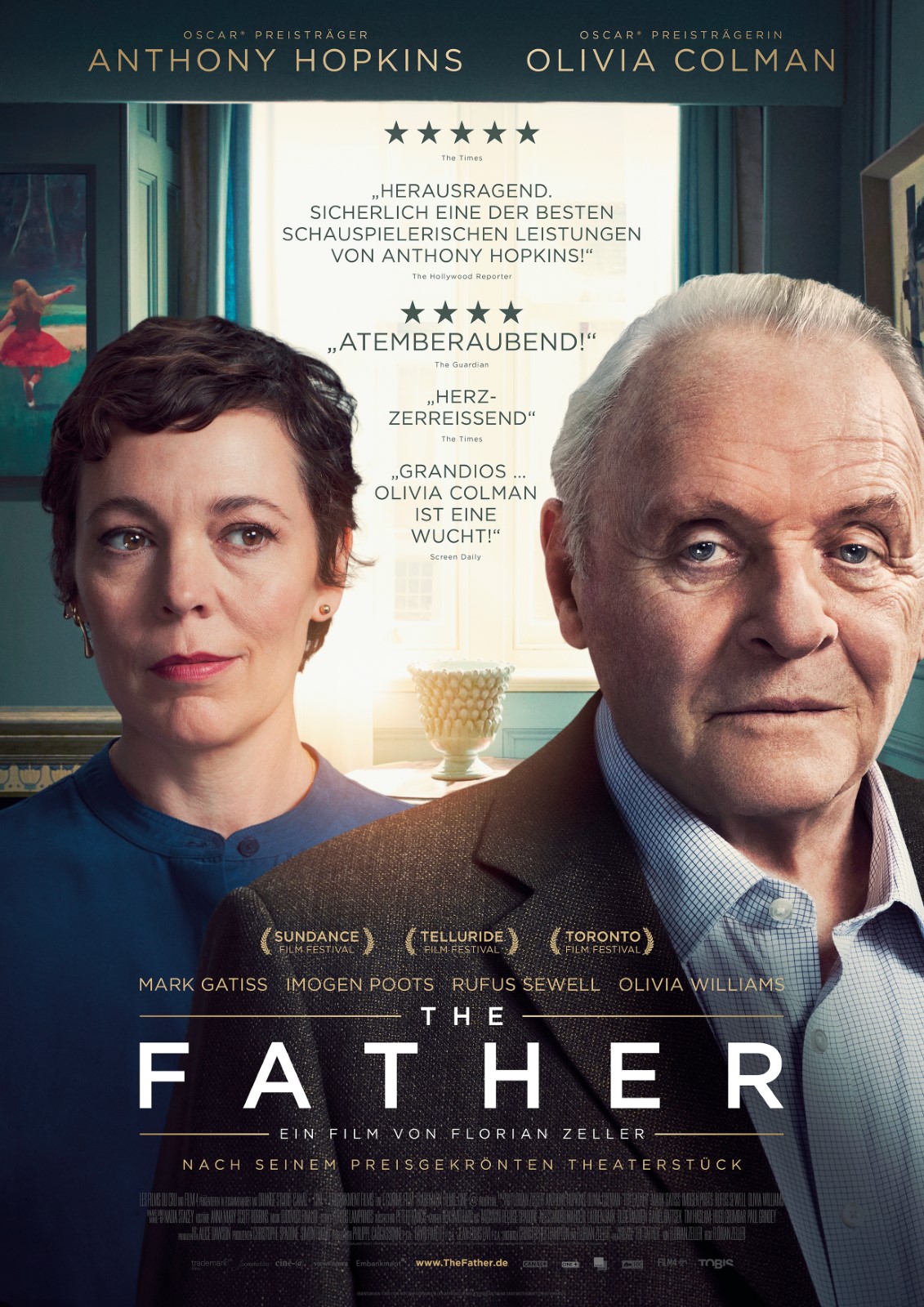 Allein drei davon wurden von der Deutschen Film- und Medienbewertung mit dem Prädikat "besonders wertvoll" ausgezeichnet. Weitere zwei wurden gar mit dem Oscar prämiert. In "The Father" 2021 zum einen die 85-jährige Leinwandlegende Anthony Hopkins als "Bester Hauptdarsteller" und das 2022 mit allein zehn Nominierungen zur Wahl gestandene Science-Fiction-Drama "Dune", das schließlich sechs Auszeichnungen einfahren konnte; u. a. als "Bester Film" des Jahres und für die Special Efects, dem zweiten Oscar von Gerd Nefzer, der auch schon in Karlsruhe gedreht hatte und ein ausführliches Interview seiner Arbeit im Buch Karlsruhe als Filmkulisse gibt.